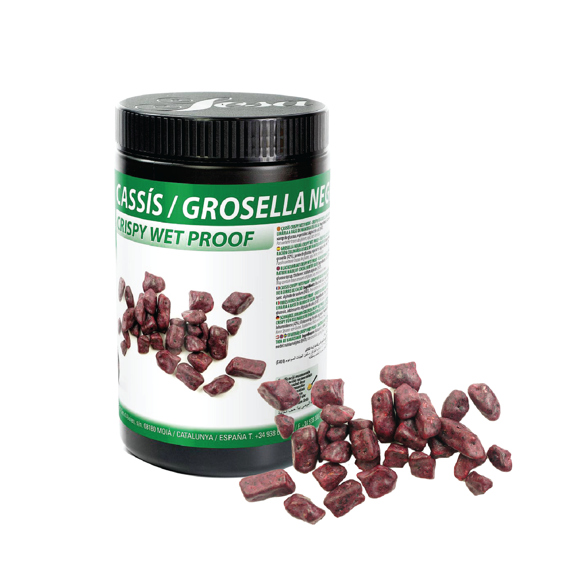 Cassis Wet Proof Crispy will add taste and texture to your creations. Cassis Wet Proof Crispy are freeze dried cassis pieces coated to ensure their crisp texture is kept when put in wet mixtures.