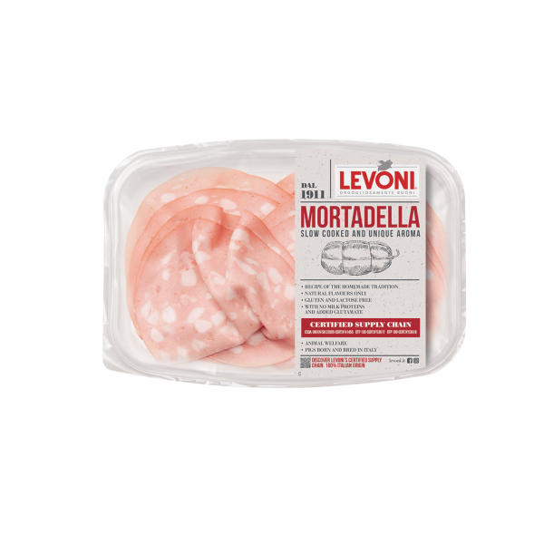 Indulge in the premium taste of pre-sliced Mortadella of Bologna, a renowned Italian delicacy protected by the PGI mark. Crafted from the finest pork, finely ground pork rind, and pork fat, this Mortadella is seasoned with a blend of salt, black pepper, herbs, and spices. After cooking, it boasts a well-balanced flavor profile, characterized by a fragrant aroma and delicate taste. Enjoy its intense pink hue and savor the authentic essence of Italian tradition with every bite.