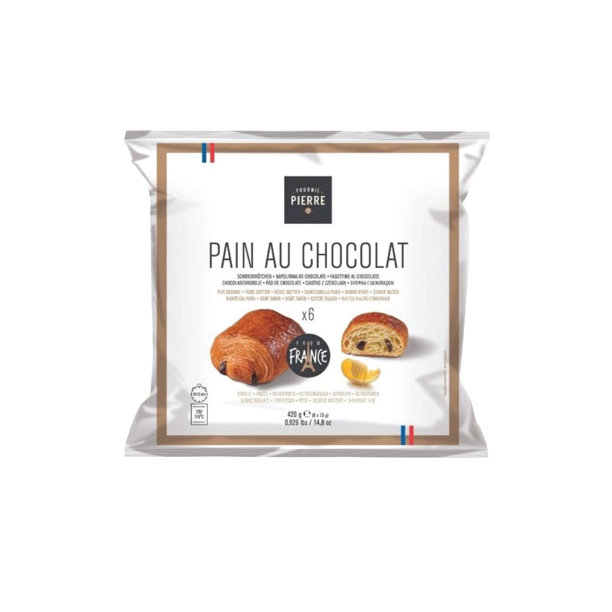 Delicious pure butter pain au chocolat in generous sizes, in a consumer bag perfect for households. A recipe where the splash of milk and cream adds intense flavours in the mouth.