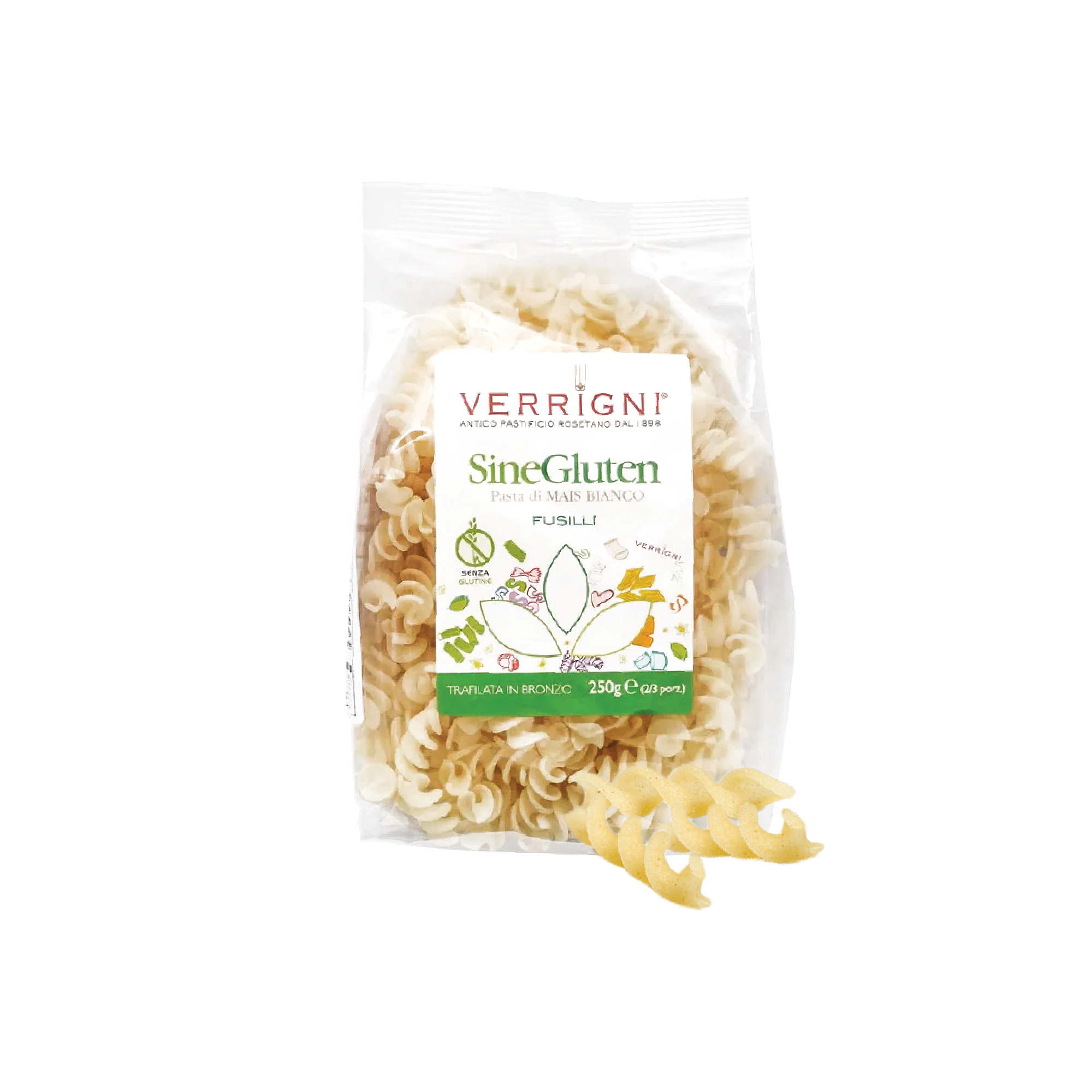 Verrigni Gluten-Free Fusilli is made with white corn, and comes in that beloved corkscrew shape that scoops sauces so well.