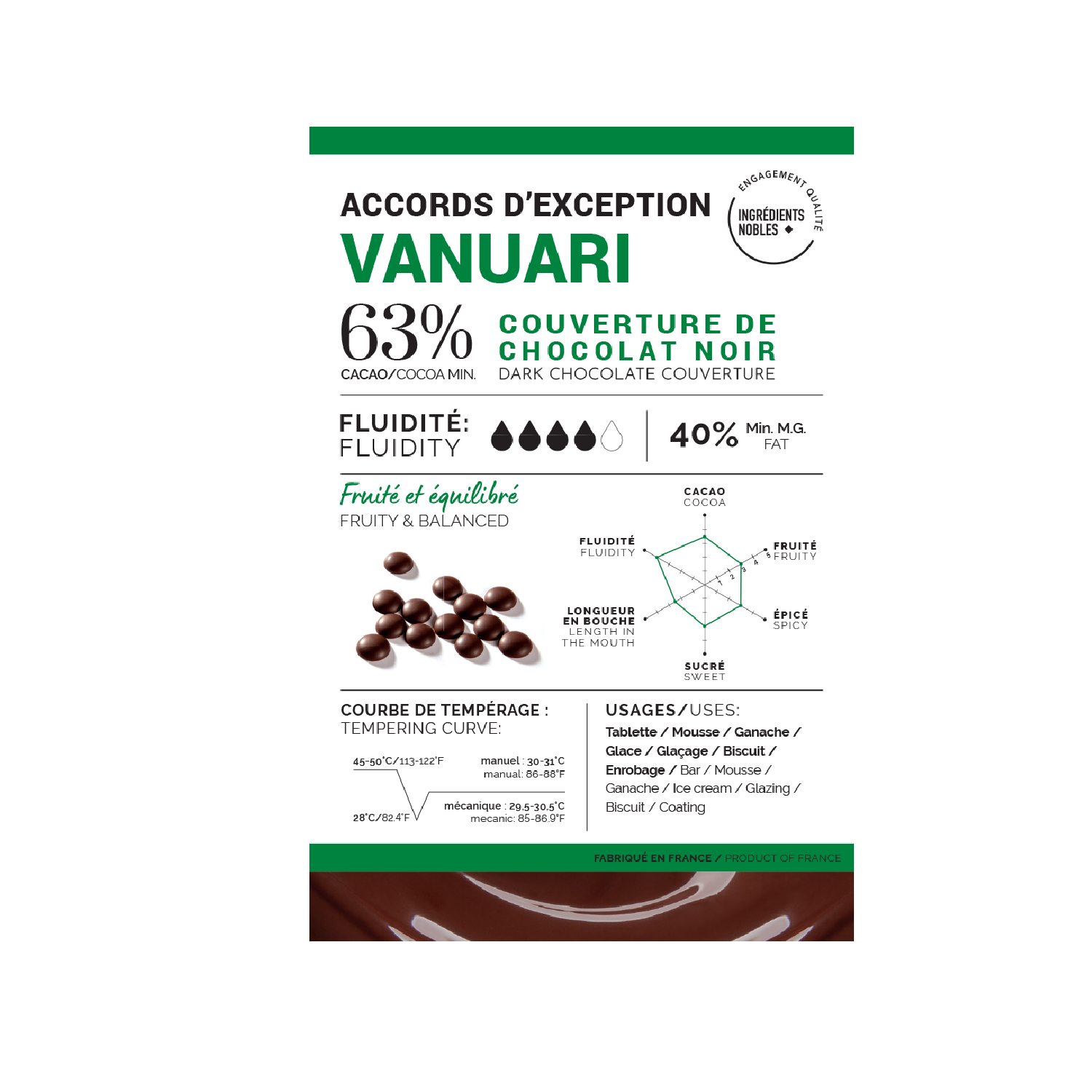 Fluid, it can be used for molding, ganaches, cakes, all pastry, chocolate or ice cream preparations.